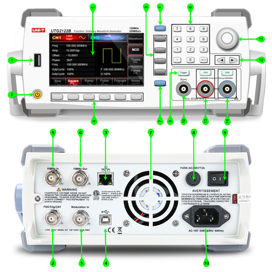 - UTG2122B - 120MHz, 2Ch, Arbitrary Waveform Generator