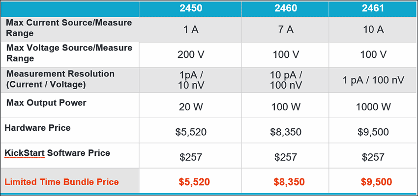 • 2450 (20 W) • 2460 (100 W) • 2461 (1,000 W) - KickStart instrument control software ($257 Value!)