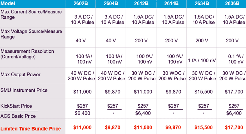 • 2614B (80 W) • 2634B (80 W) • 2636B (60 W) - Choice of KickStart instrument control OR ACS Basic software*